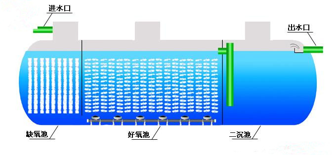一體化污水處理設(shè)備是將一沉池、I、II級(jí)接觸氧化池、二沉池、污泥池集中一體的設(shè)備,并在I、II級(jí)接觸氧化池中進(jìn)行鼓風(fēng)曝氣,使接觸氧化法和活性污泥法有效的結(jié)合起來(lái),節(jié)省了找人設(shè)計(jì)污水處理工藝和做基礎(chǔ)建設(shè)的繁瑣。